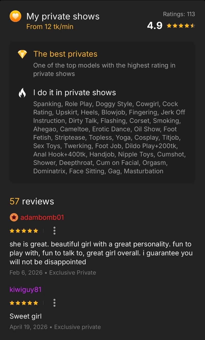 – Before private, please send me pm to find out your preferences which might turn me on or off. Pm cost a nominal fee in my tip menu